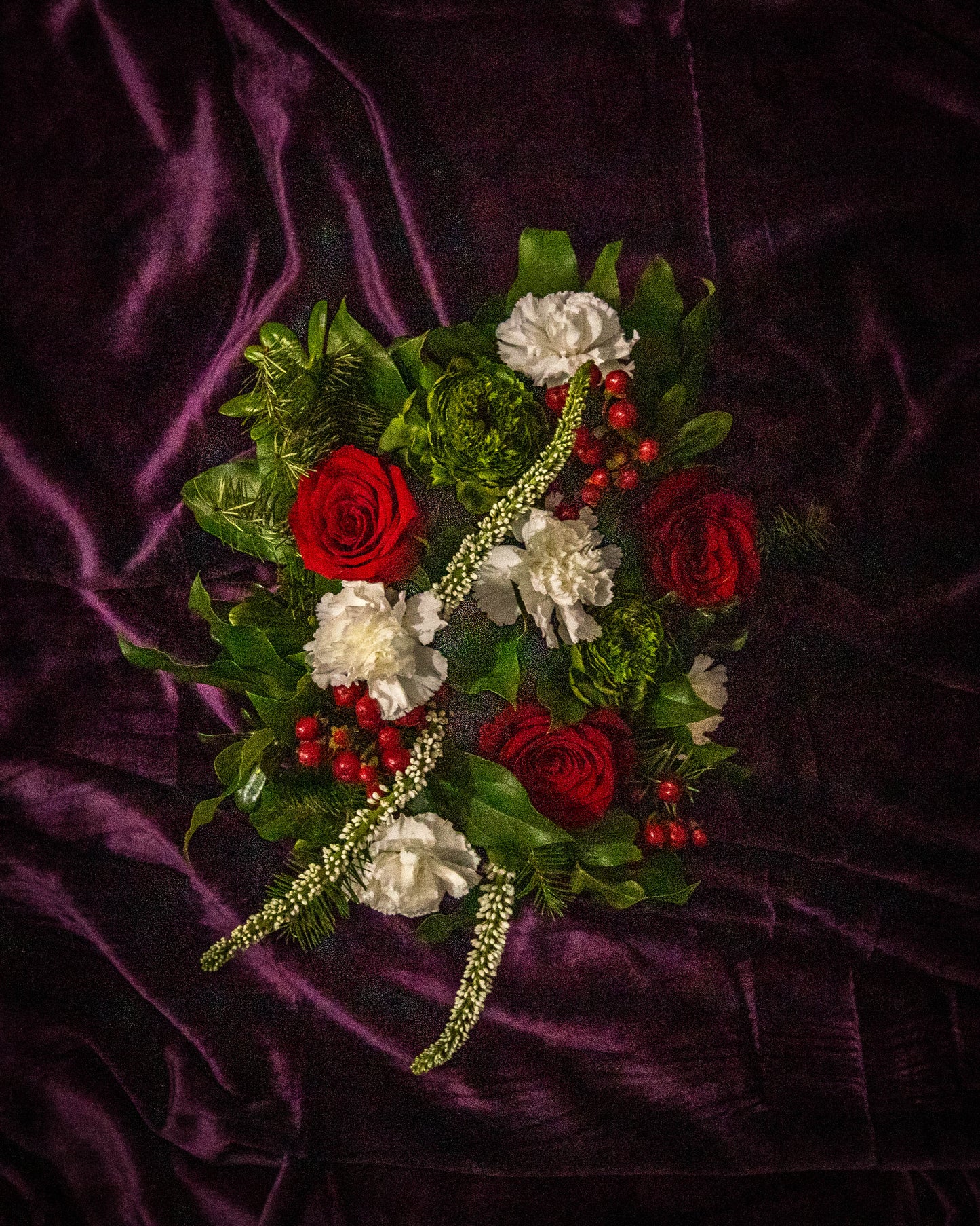 Each arrangement is handcrafted fresh in our studio, using premium seasonal flowers and long-lasting evergreens.