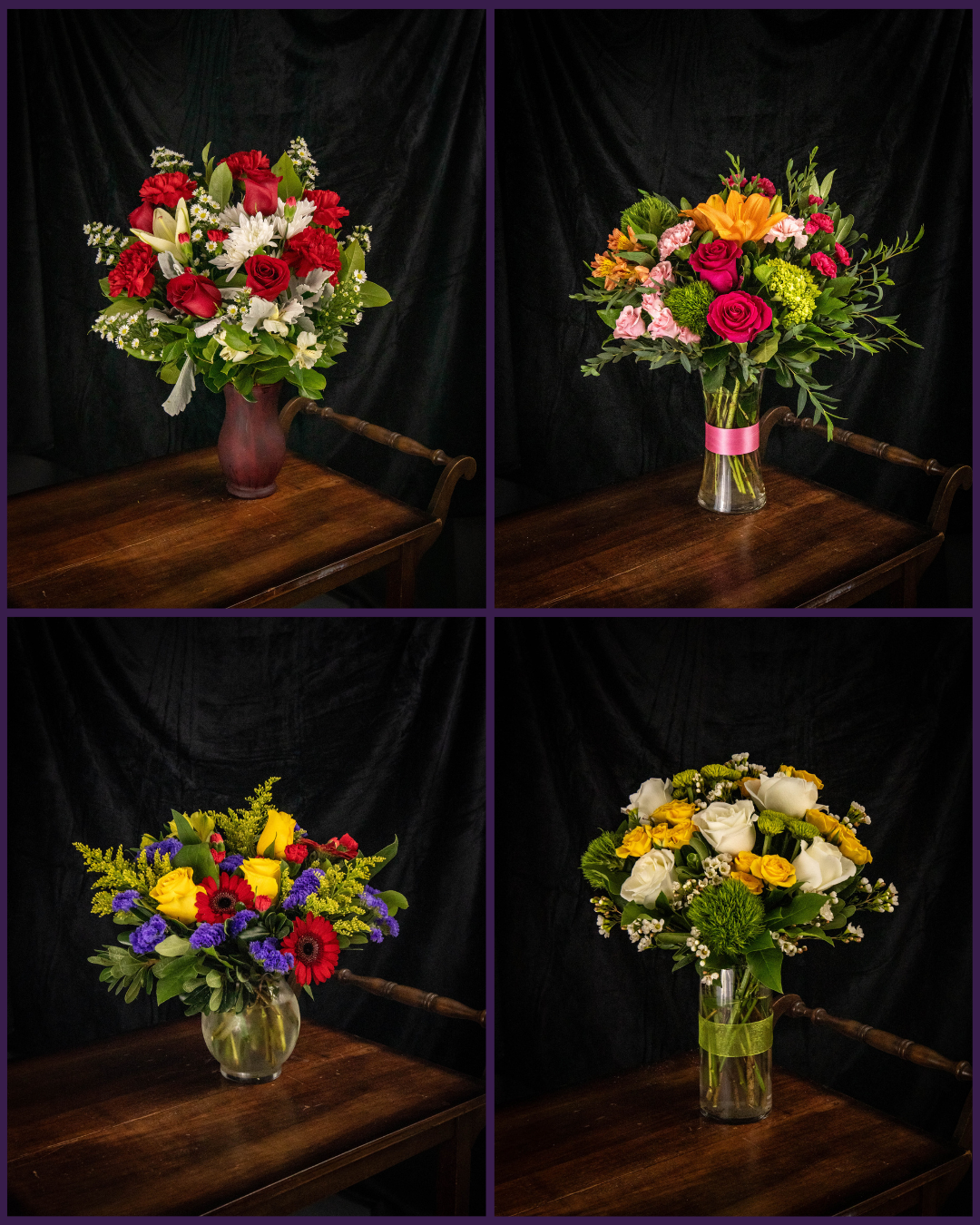 Photos are for size reference only. Flowers and colors will vary based on season and availability. Every arrangement is custom-designed using the freshest blooms and styled to fit the occasion.